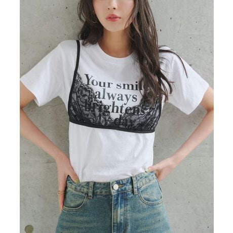 フロントのロゴプリントが目を惹く、スタイリングのアクセントになるミニTシャツ。