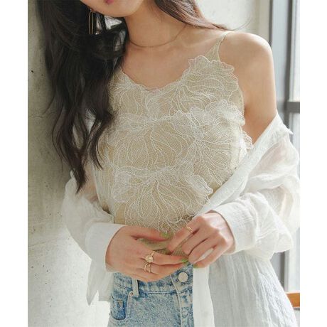 一枚でヘルシーな肌見せスタイルから、シャツやカーデのインナートップスとしても着映えするレースキャミです◎