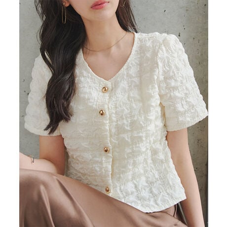 ポコポコとした表情のある立体柄デザインで魅せるニュアンストップス。