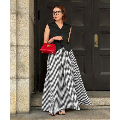 マニッシュでコンパクトなサイズ感のジレと、歩くたびに揺れるマキシ丈のギャザースカートはセットアップはもちろん、それぞれ単品でも使える着回し力抜群のアイテムです。