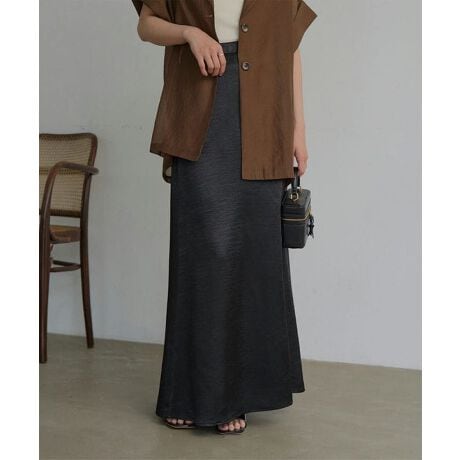 ウエストはバックゴム仕様なのでリラックスした穿き心地も叶えてくれるナロースカートです。
