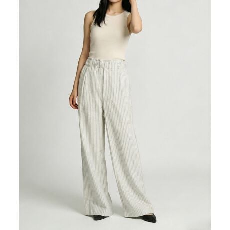 繊細な縦プリーツが上品な表情を演出する、ナチュラルテイストのイージーワイドパンツ。ストライプ調の縦ラインが脚をすっきりと見せ、リラックス感がありながらも大人っぽい印象に仕上がります。