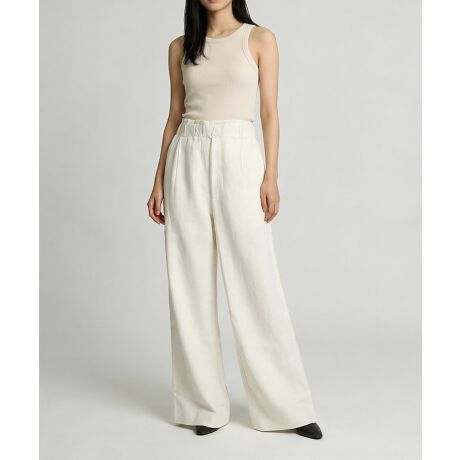 麻混素材ならではのさらっとした肌触りと通気性の良さが魅力で、春夏シーズンを中心に快適に着用可能。軽やかな素材感が動くたびに自然なドレープを生み、シンプルなトップスと合わせるだけでこなれたスタイリングが完成します。
