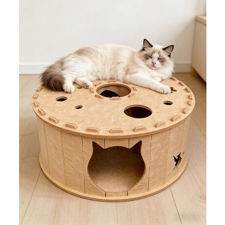 トンネル・隠れ家・爪とぎを組み合わせた、多機能キャットハウス。