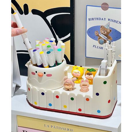 ペン立て、小物収納が一体になった設計で、デスクまわりをすっきり整えながら、使いやすさもアップ。