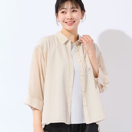 マルイウェブチャネル   /   ミゼール   /   トップス   /   シャツ   /   【洗える・3Lサイズあり】シアーストライプシャツ
