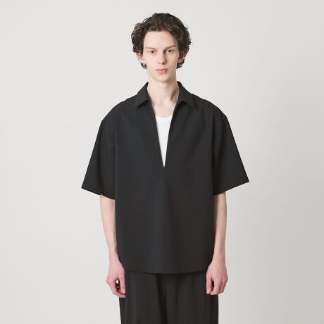 ウールライクなキレイ目の素材感ながらも麻のような肌離れの良さが特徴の<monkey time>夏の定番素材「RENUトロピカル」を使用したスキッパーシャツ。