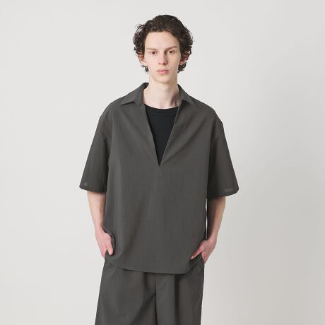 ウールライクなキレイ目の素材感ながらも麻のような肌離れの良さが特徴の<monkey time>夏の定番素材「RENUトロピカル」を使用したスキッパーシャツ。