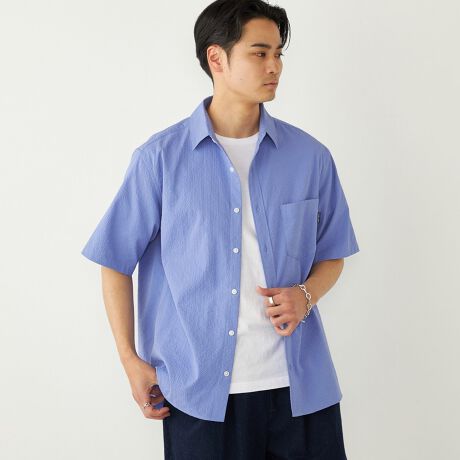 ライトな素材感のシアサッカー生地を使用した、夏にぴったりのショートスリーブシャツ。