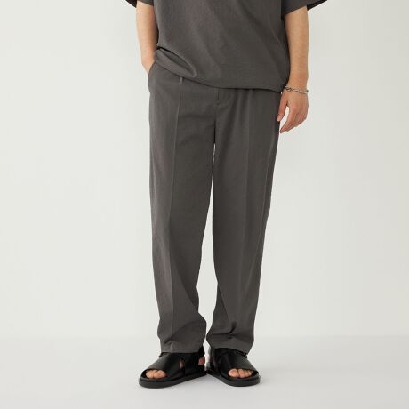 ライトな素材感のシアサッカー生地を使用した、夏にぴったりのイージーパンツ。