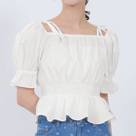 デニムパンツと好相性な一枚です。フェミニンな雰囲気とラフさをバランス良く演出。