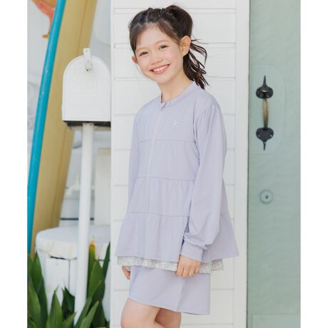今期のラッシュガードはふんわりと広がるティアードデザインで可愛らしい1枚に仕上げました。