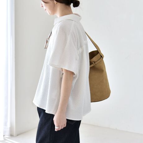 後身頃はヨーク下から袖にかけてギャザーを施し、ふんわりと広がる立体的なシルエットに。
