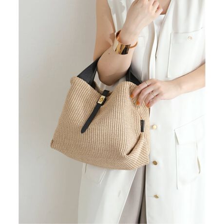 天然素材ではなくラフィア調の生地を使用することで、従来の手編みのカゴバッグでは表現しづらいトレンド感のあるクリーンなデザインに。