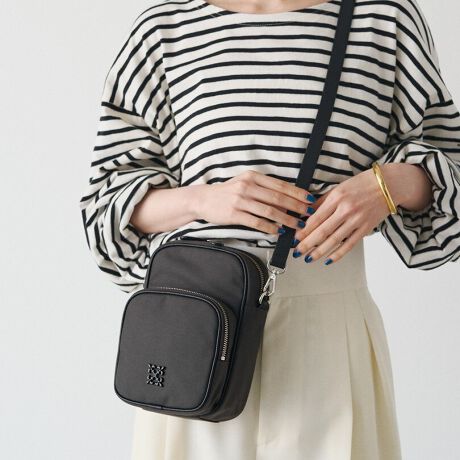 耐久性に優れたコーデュラナイロンを使用し、必需品をコンパクトにまとめる縦型スリムシルエットに仕立てました。
