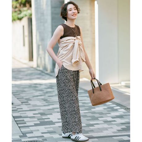 とろみ素材ですっきり見え!リラックス感たっぷりの柄アソートイージーパンツ
