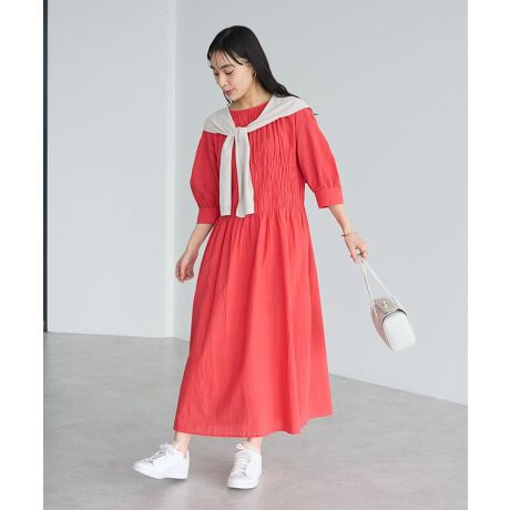 <b>一枚で華やぐ上品シャーリングワンピース</b>