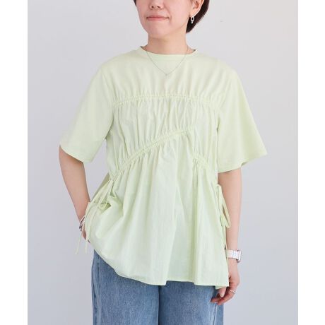 ギャザーデザインが生み出すふんわりとした立体感が、コーデに程よい華やかさをプラス。