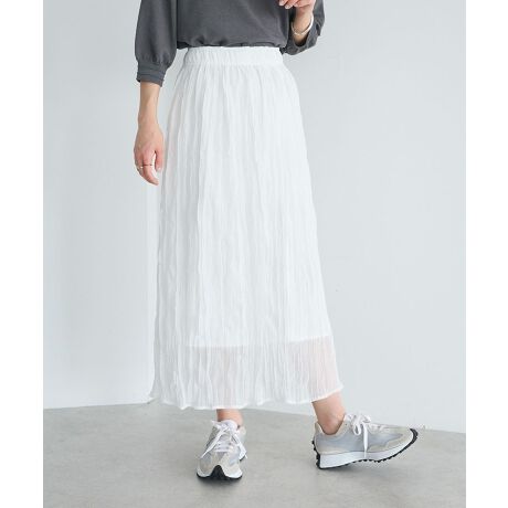 軽やかな透け感で魅せる大人のきれいめスタイルシアー素材ならではのやさしい透け感が、コーディネートに抜け感と上品さをプラスするスカートです。ワッシャー加工によるナチュラルな風合いが、動きに表情を与え、軽やかな印象に仕上げてくれます。ウエストゴム仕様で着脱がしやすく、長時間でも快適に過ごせるのが魅力です。ふんわりとしたシルエットが体のラインを拾いにくく、自然にカバーしてくれます。カジュアルにもきれいめにも取り入れやすく、幅広いシーンで活躍する万能なアイテムです。透け感[ややあり]