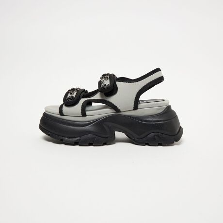 スポーティなアッパーに煌びやかなビジューを散りばめたサンダル。