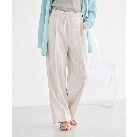 さらっと軽やか大人のリラックスパンツリネンのようなナチュラルな風合いが魅力で、見た目にも涼しげな印象を与えてくれる一着です。ゆったりとしたシルエットで締め付け感が少なく、リラックスした穿き心地を叶えます。軽やかな素材感が肌に心地よく、暑い季節でも快適に過ごせるのがうれしいポイントです。シンプルなデザインでトップスを選ばず、カジュアルからきれいめまで幅広いスタイリングに対応します。日常使いはもちろん、お出かけにも取り入れやすく、コーディネートの幅が広がります。気負わず着られて自然とおしゃれに見える、大人のための一本です。透け感[なし]