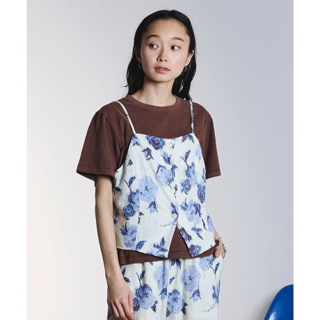 ・麻混ならではのざっくりとした風合いに、オリジナルプリントをのせたキャミソールベスト