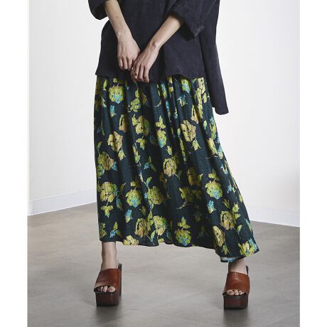 ・麻混のナチュラルな風合いに、オリジナルプリントをのせたロングスカート