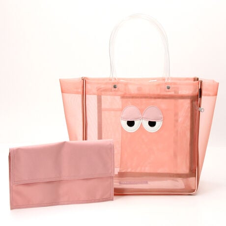 本体はハリのあるメッシュ素材。軽やかな抜け感で、コーディネートに遊び心をプラス。付属の簡易ポーチ(約25cm四方のシート状)は、