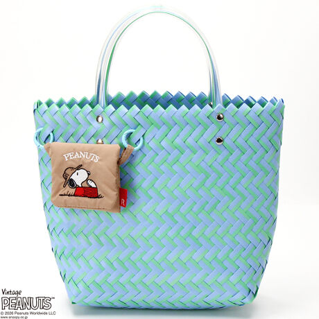 [型番:8510]ルートートのIP.デリBasket.Peanuts-1G【軽量で使いやすい夏トート】軽量で容量も入る夏トートバッグ。カラフル&ハリのあるテープを編んだバスケットに、キュートな刺繍入り&着脱可能なポケットを付属。ポケットにはフラップ付きなので、イヤホンやアクセサリーなど細々したモノの収納に◎