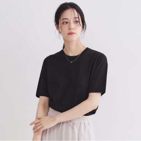 着回し力の高い、シンプルなハーフスリーブのニットトップスです。