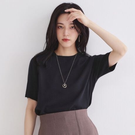 着回し力の高い、シンプルなハーフスリーブのニットトップスです。