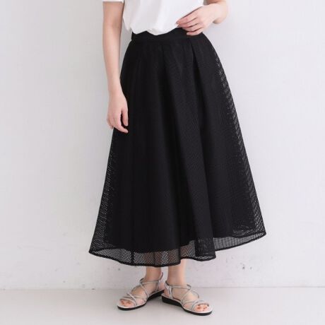 トレンドのメッシュ素材を使用した、華やかなタックフレアスカート