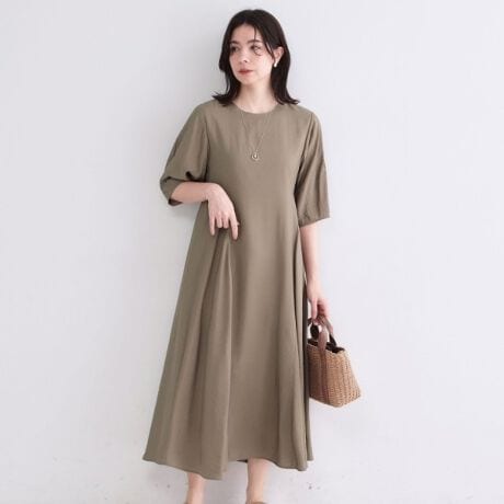 ・きれいめにもデイリーにも着られる、軽やか素材のシンプルなワンピース。