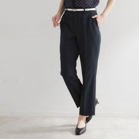 後ろウエストはゴム仕様できちんと感がありながら快適なはき心地で、通勤からデイリーまで幅広く活躍するパンツになっています。