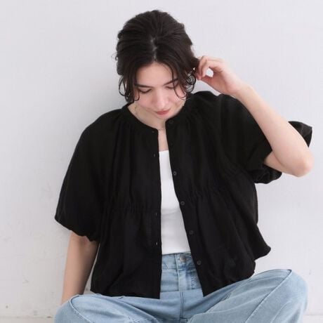 表面感のある軽やかな素材感が魅力のバルーンデザインブラウス