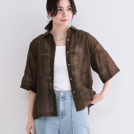 シアー感のあるカットワーク刺繍素材を使用した夏にピッタリのハーフスリーブシャツ【セットアップ対応】