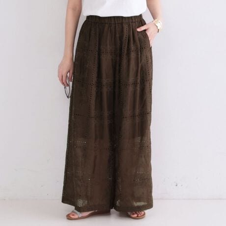 シアー感のあるカットワーク刺繍素材を使用した夏にピッタリのイージーワイドパンツ【セットアップ対応】