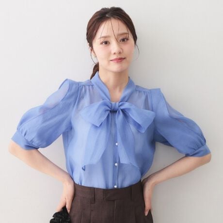 オーガンジーのシアー感がトレンドなリボンフリルブラウス