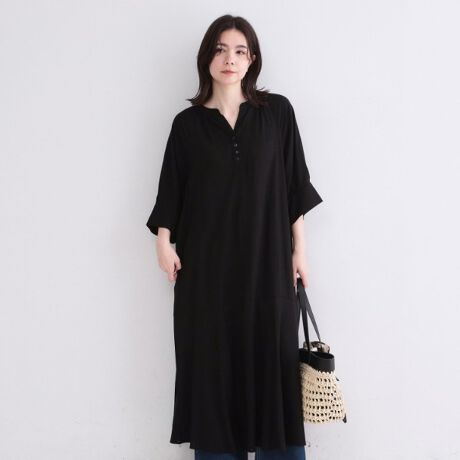 マルイウェブチャネル   /   オペークドットクリップ   /   ワンピースドレス   /   ワンピース   /   レーヨン/麻キーネックロングワンピース【洗える】