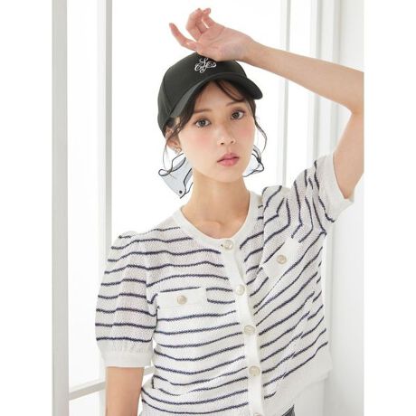風通しの良いカノコ編みは透けすぎないよう度目も調整し、着心地にもこだわりました。黄色味を抑えた上品なゴールドカラーのオリジナル釦でツイード風のデザインに仕上げています。
