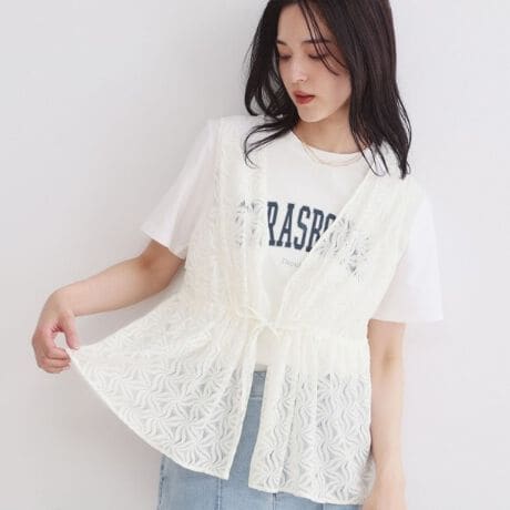 軽やかに重ねて、品よく華やぐレースペプラムジレ
