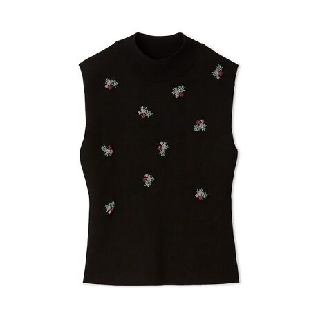 色とりどりのビーズ刺繍で表現したフラワーモチーフが散りばめられたニットトップス。