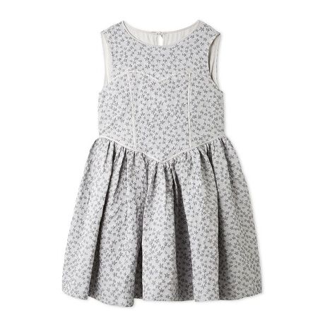 ふくれジャガード生地を使用したミニ丈のドレス。両脇ウエストにハードチュールを仕込み、裾には芯を貼ることで立体感のあるフレアシルエットに仕上げました。インナーとのレイヤードを楽しめるように上身頃はややゆとりのあるサイズ感に設定。一枚でも、重ね着でもスタイリングが広がるアイテムです。