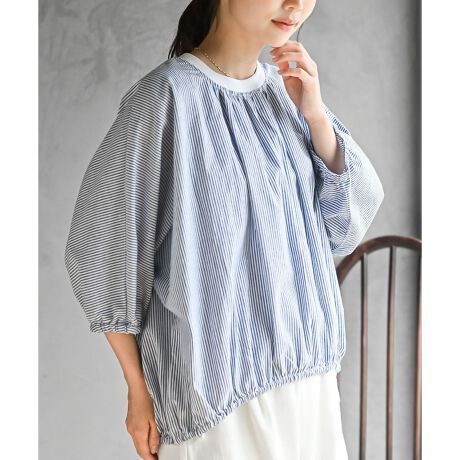裾ゴムギャザー6分袖ドルマンブラウス