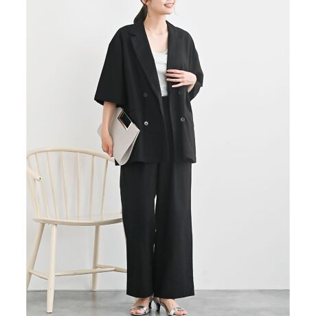 半袖テーラージャケット×パンツ綿麻セットアップ
