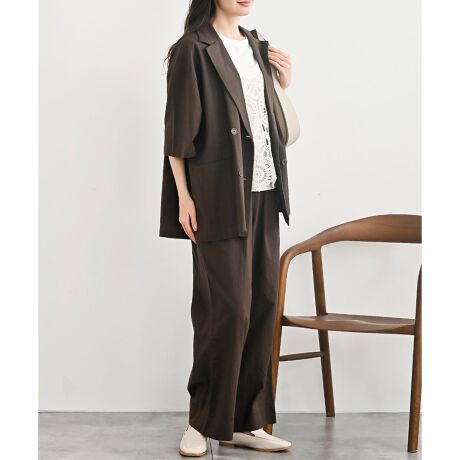 半袖テーラージャケット×パンツ綿麻セットアップ
