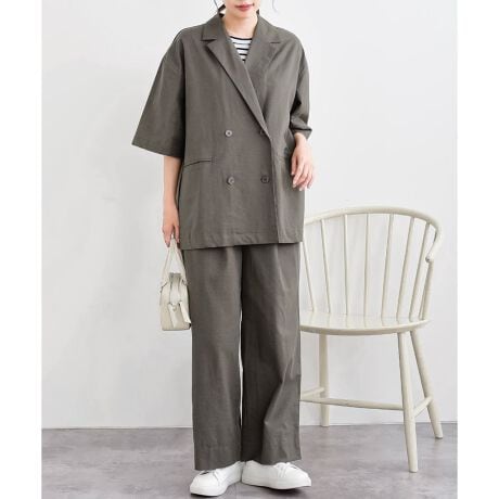 半袖テーラージャケット×パンツ綿麻セットアップ