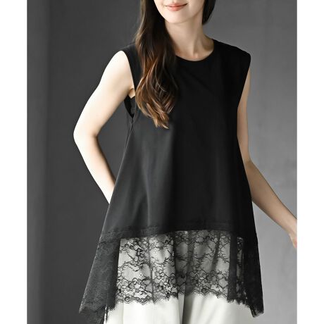 裾レースイレヘムノースリーブT