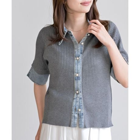 デニム切替リブニットカーディガン