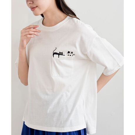 ペアーキャット刺繍ポケットT